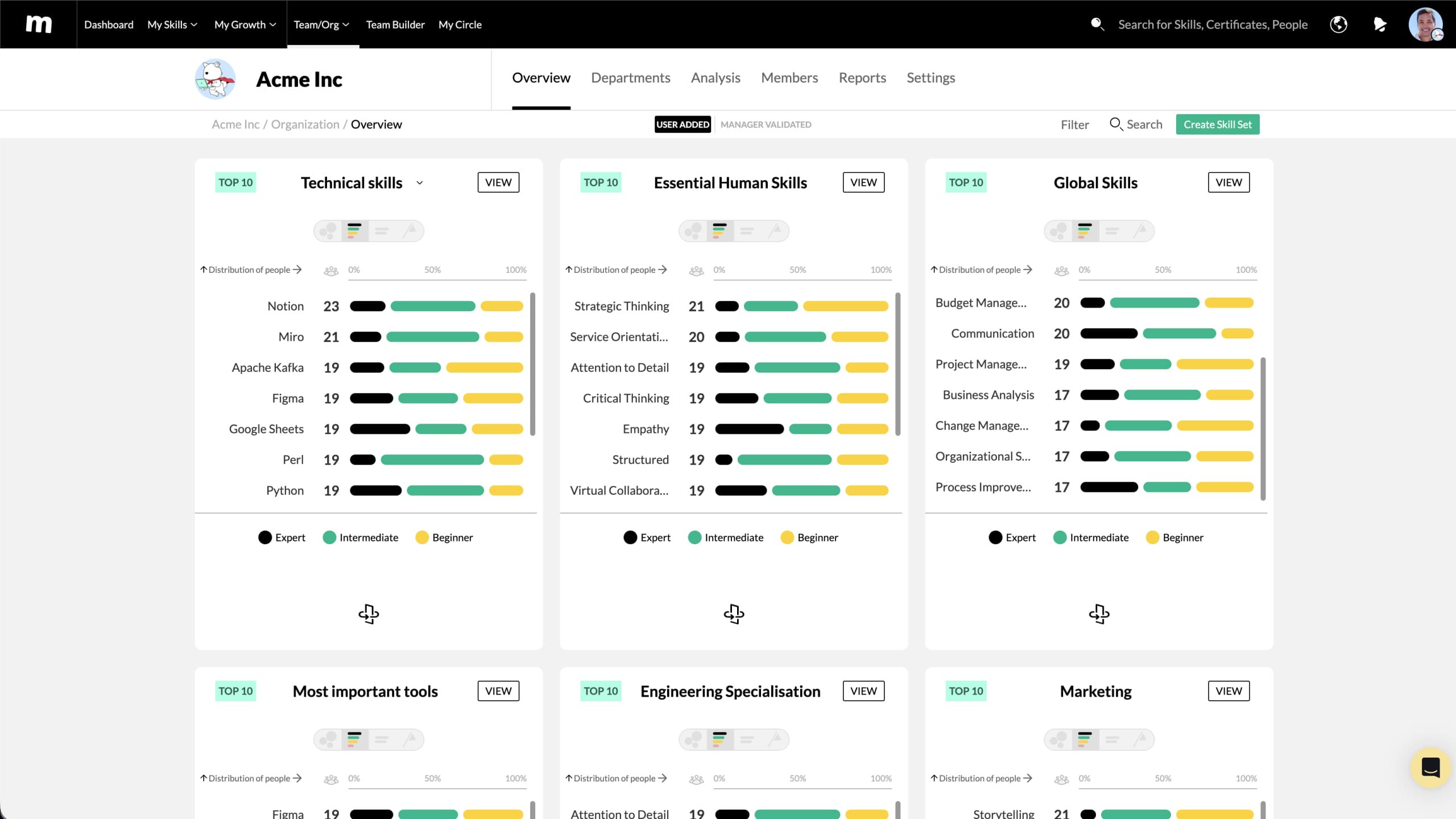 Make the data visible and usable. Present skills data in a format that managers and leaders can actually use – clear visualisations, filterable by team, role, or skill, rather than a static table that requires expert interpretation.